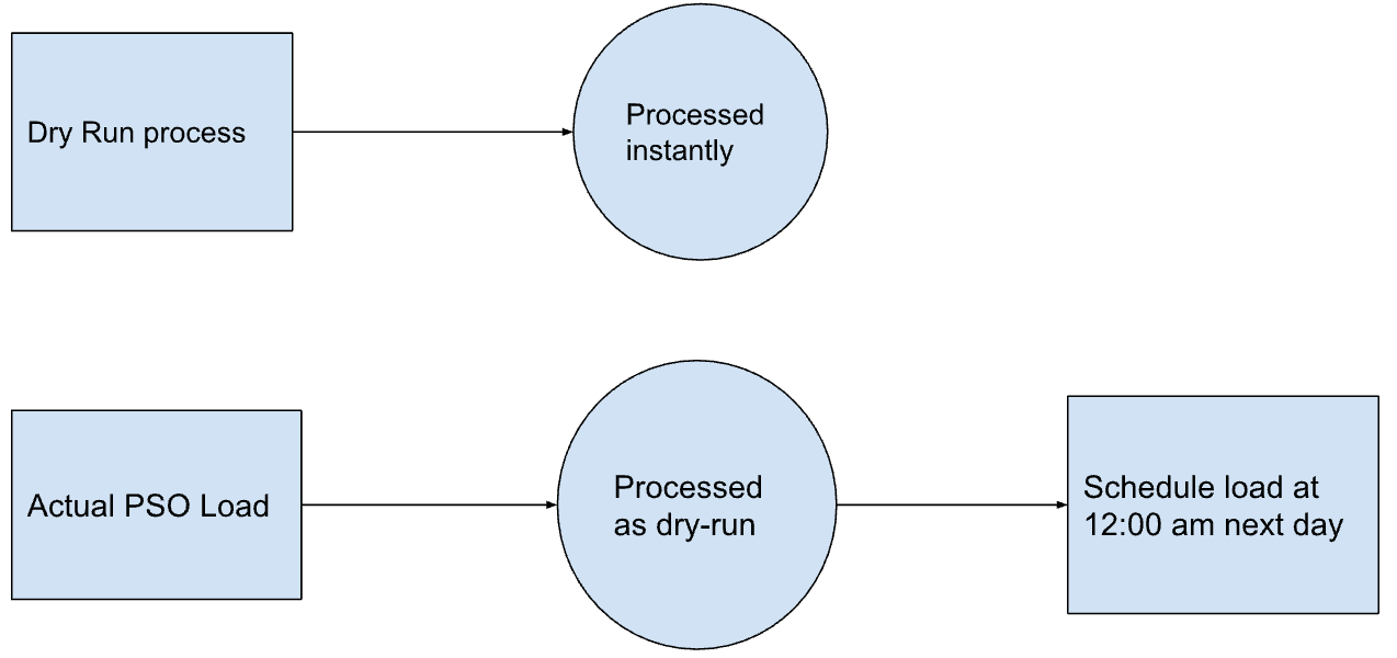 At present, when a user initiates an actual PSO load process, the load process takes place immediately. However, due to technical constraints impacting data crawls, we have made the decision to reschedule the actual PSO load. It will now be set to run at 00:00 am on the following day. Consequently, when a user initiates an actual PSO load process, a dry run process will be executed in real time instead of an actual load. Once the dry run process is successfully completed, the actual load process will be triggered to commence at the beginning of the next day.